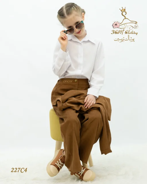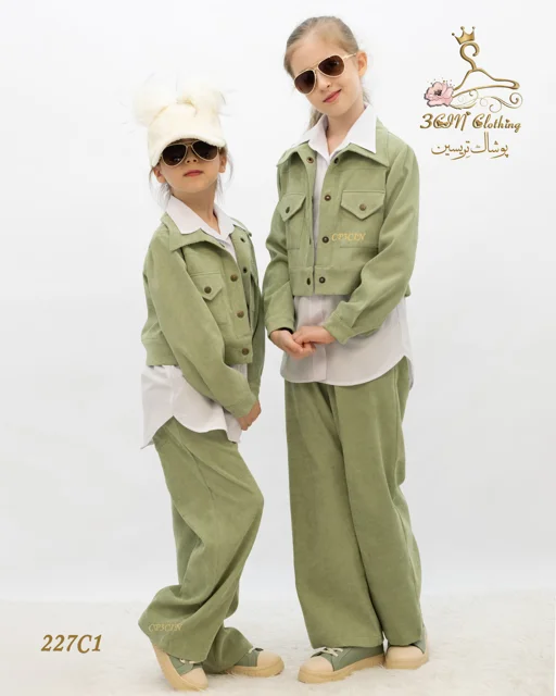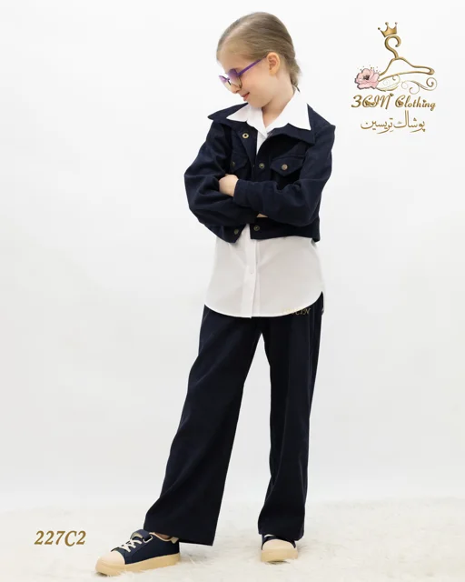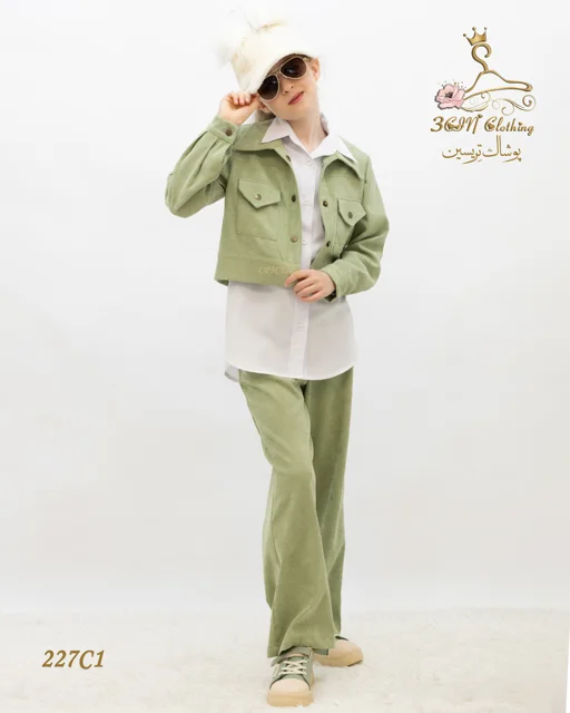 شلوار شومیز و کت کراپ دخترانه مدل 227 شش رنگ تریسین